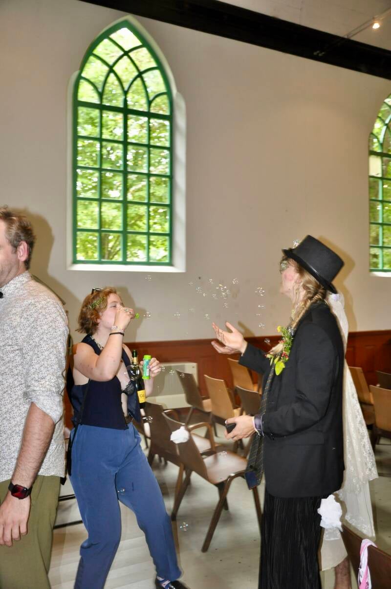 Trouwen met jezelf, met je throuple of met je trouwe staafmixer? Het kon allemaal tijdens het zomerpension in Wongema op zondag 20 juli 2025. De hele dag stond hier in het teken van grote gevoelens, glitterhartjes & korte termijn-commitment.